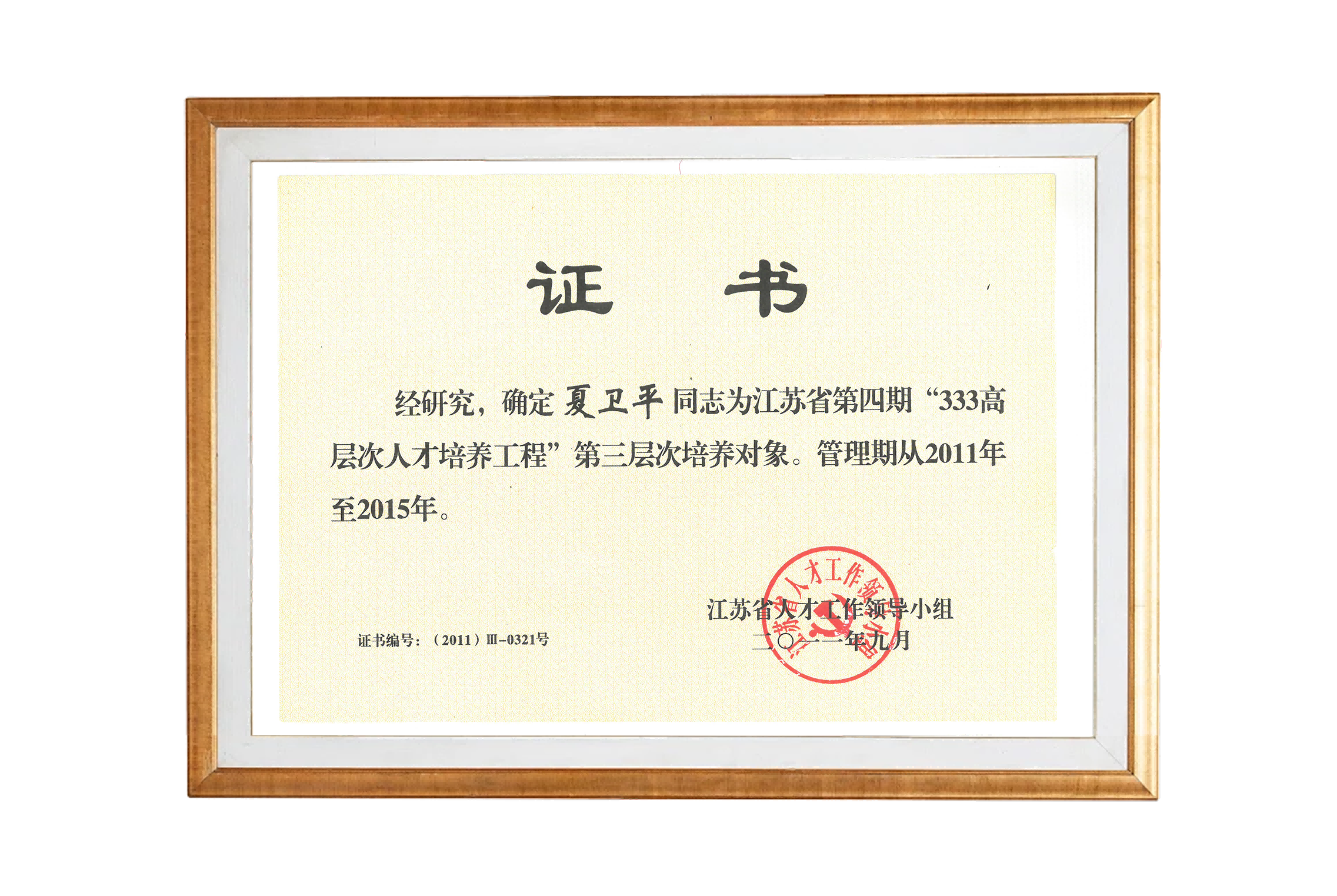夏衛平-江蘇省第四期333高層次人才培訓工程第三層次培養對象2011-2015