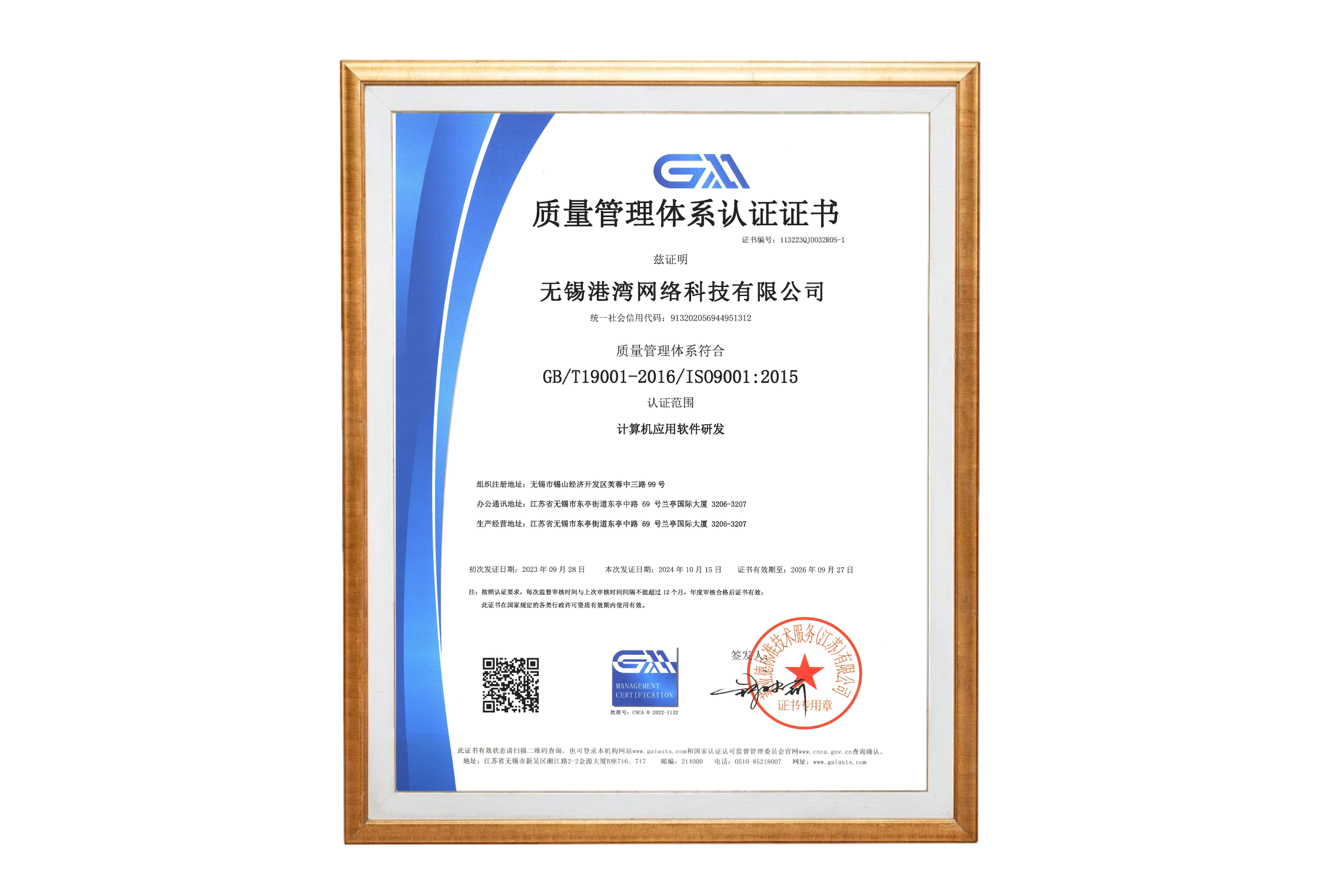 無錫港灣-AAA級質量服務誠信單位