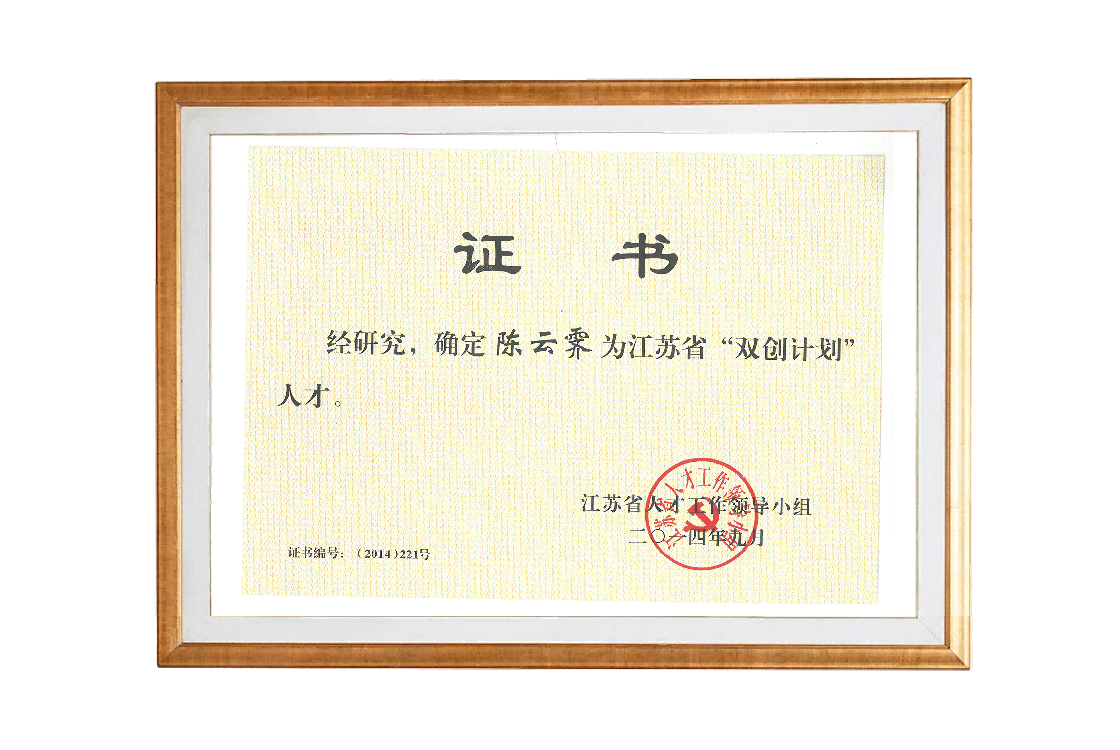 陳云霽--江蘇省雙創計劃