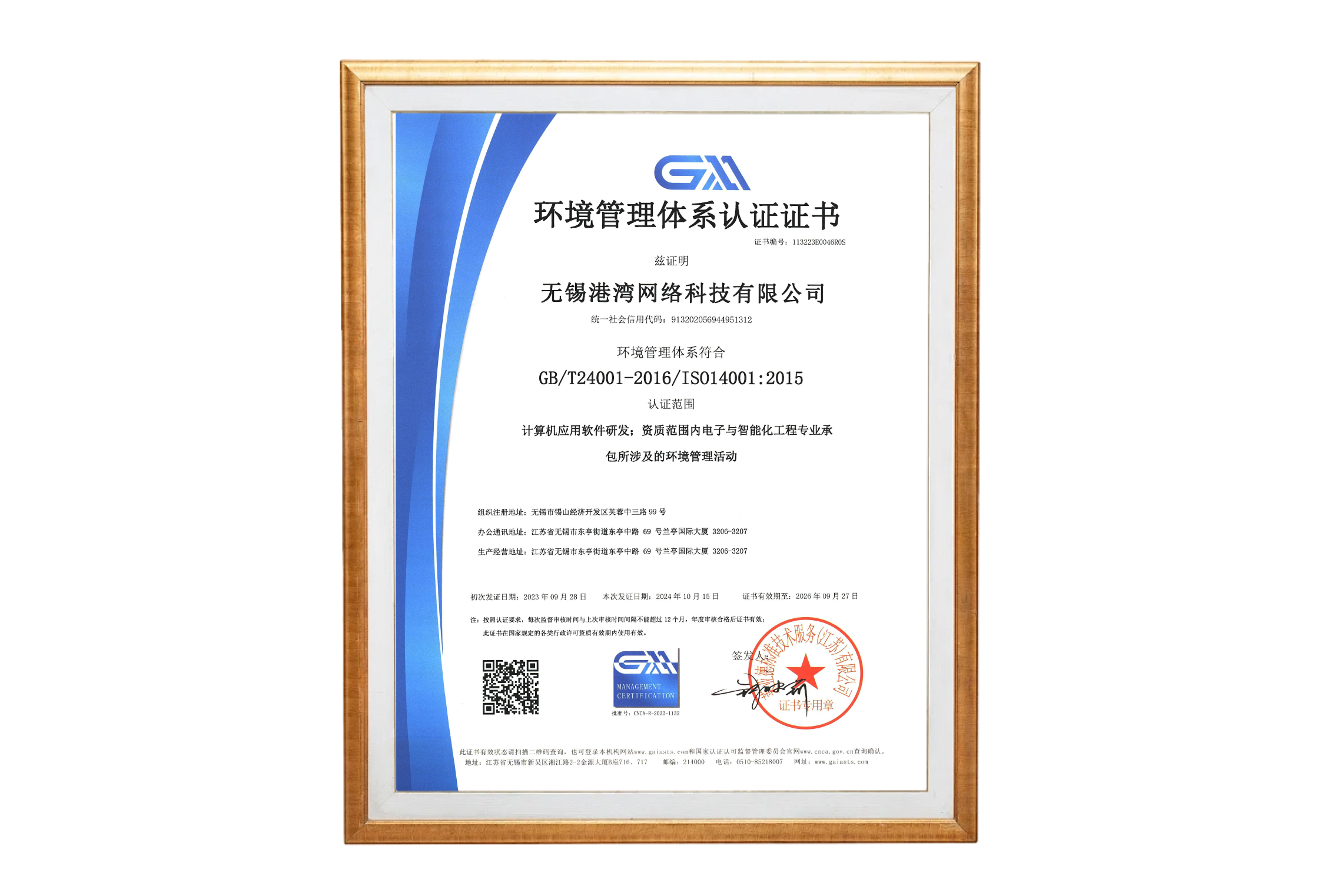 環境管理體系認證證書